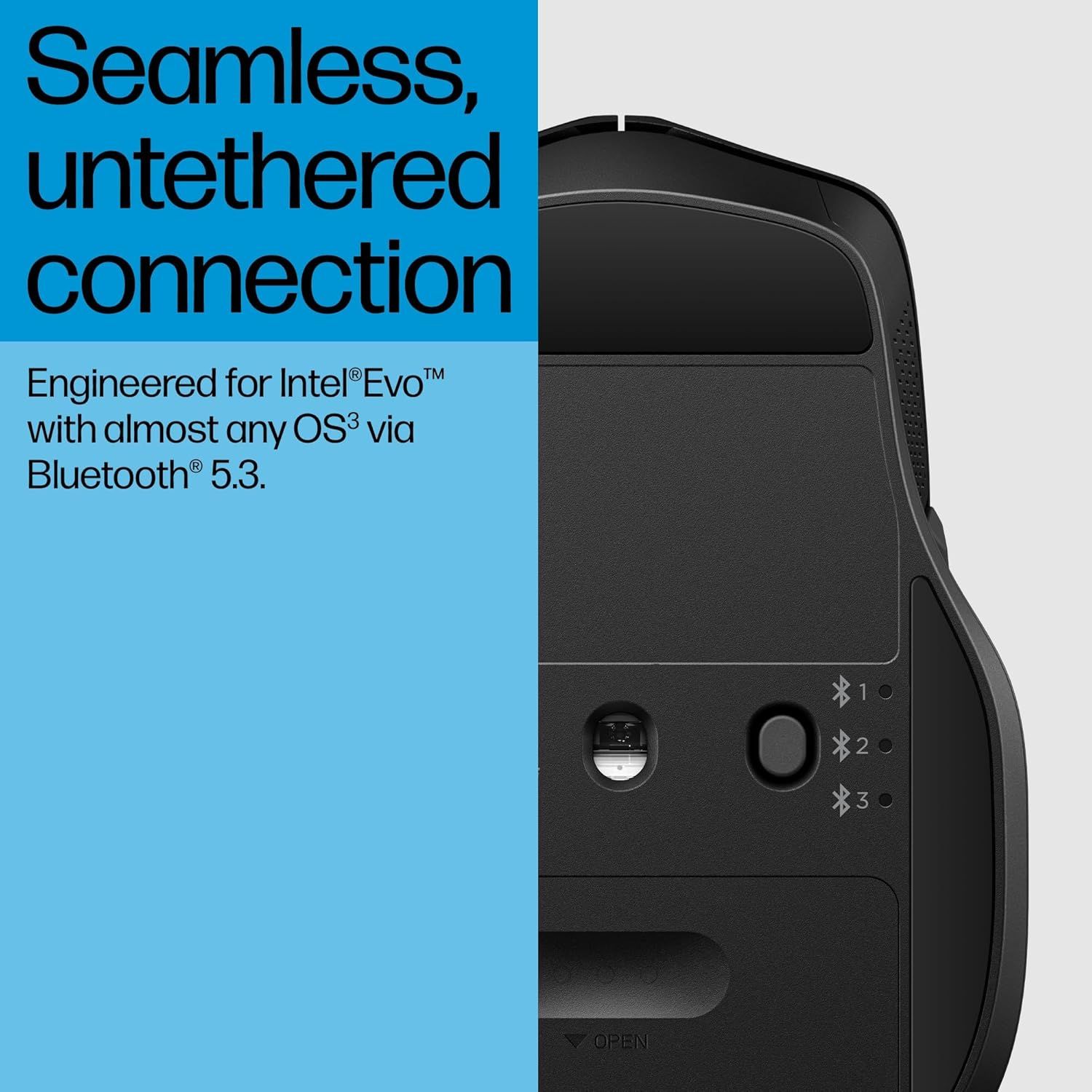The HP 480 Comfort Bluetooth Mouse is a comfortable and productive mouse designed for everyday use. Its ergonomic design with soft side inserts, a thumb rest and quiet clicks ensures comfort even during long hours of work.