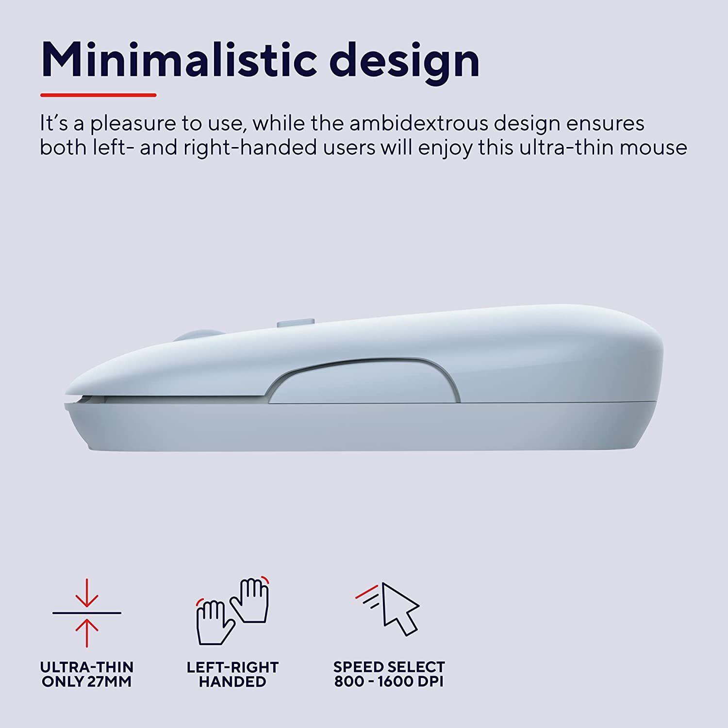 At just 27mm tall, the Puck Rechargeable Wireless Bluetooth Mouse features an ultra-slim design that fits easily into any bag, eliminating clutter and giving your workstation a sleek, minimalist look.
