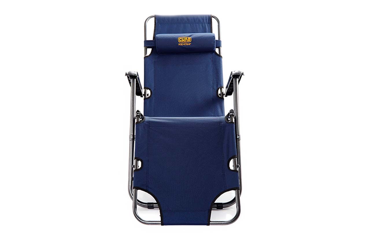 Производный раскладной шезлонг из качественных крепких материалов с подголовником, компактное туристическое кресло.
