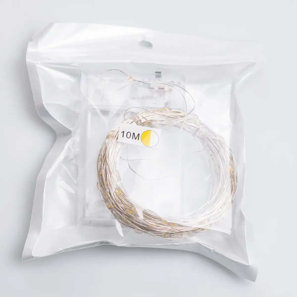 Гірлянда роса 10 метрів крапля на батарейках на 100 led білий дріт жовтий 100L10MWY
