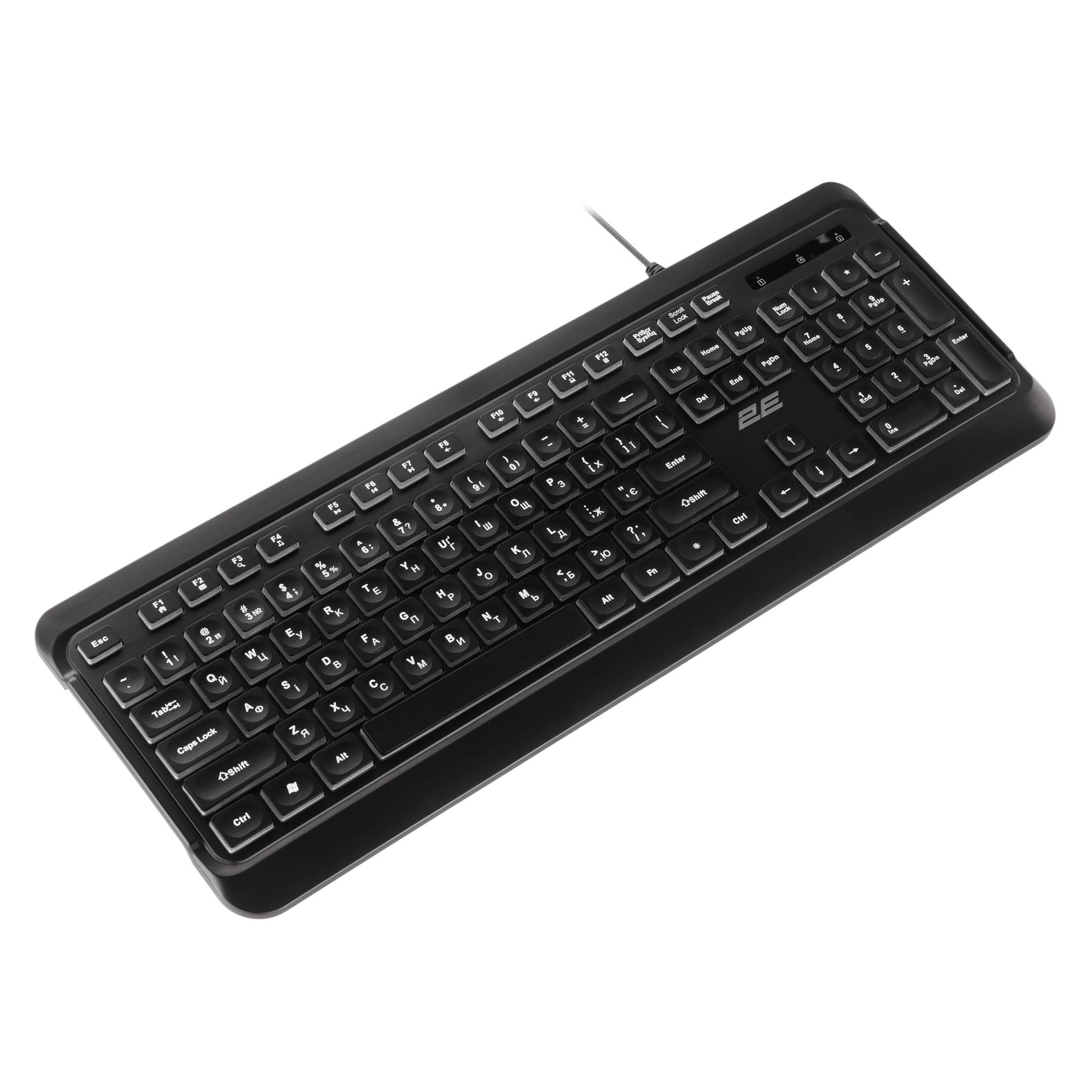 Клавіатура мембранна 2E KS120 104key, USB-A, EN/UK, White LED, чорний