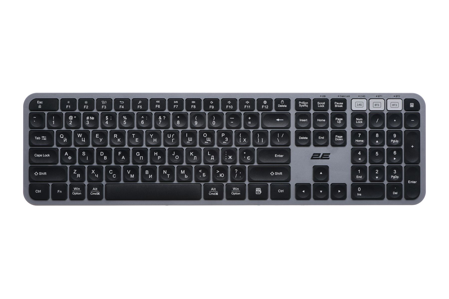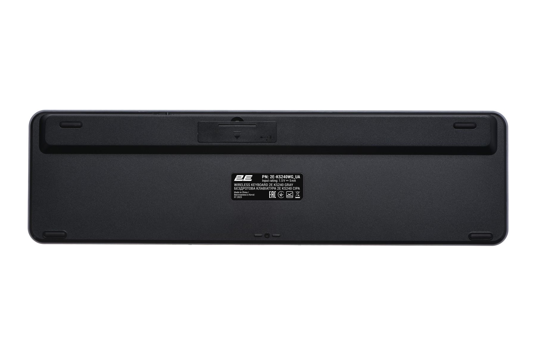 Клавіатура мембранна 2E KS240 110key, WL/BT, EN/UK, сіро-чорний