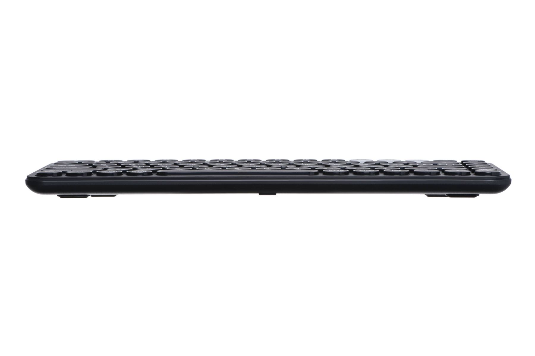 В ергономічному корпусі клавіатури компактно та водночас зручно вміщено 84 округлі клавіші, які вирізняються тихим і чітким ходом, а 12 із них – мультимедійні, що зумовлює можливість легкого керування звуком, відтворенням відео чи іншими функціями через натискання кількох клавіш.