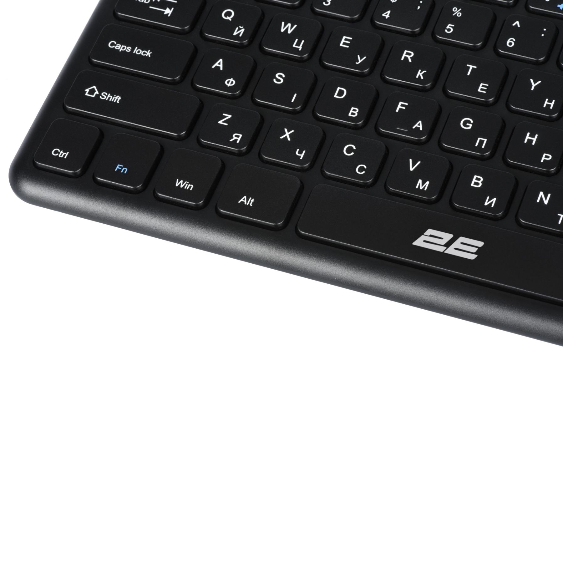 2E KT100 розроблено спеціально для зручної роботи. З її допомогою можна замінити відразу два пристрої і працювати в зручному для себе місці. Підтримуються різні ОС, в тому числі і SmartTV, тому один з сценаріїв передбачає роботу з телевізором прямо на дивані. Клавіатура виконана з чорного полікарбонату з матовою поверхнею. Тачпад отримав приємне покриття, завдяки якому палець відмінно ковзає по поверхні. Вся лінійка клавіатур 2Е має пріоритетну українську розкладку.