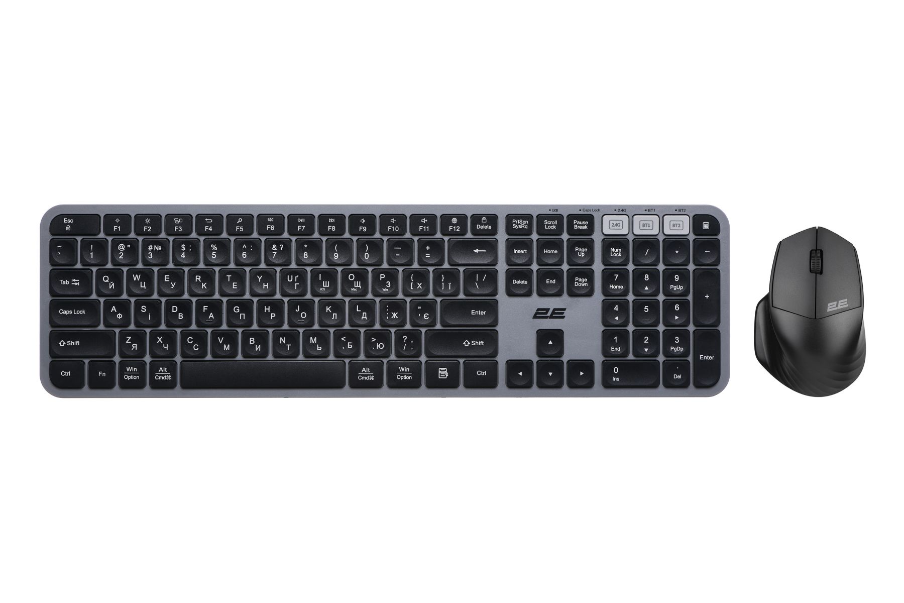 Комплект клавіатура та миша 2E MK440 WL/BT, EN/UK, сіро-чорний