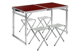 Повноцінний комплект меблів для пікніка преміум-класу, що включає 5 предметів (стіл і 4 стільчика). Забезпечує комфортне розміщення на природі, на терасі або в саду. Виготовлений з міцних та довговічних матеріалів, стійких до погодних умов, легко складається та транспортується.
