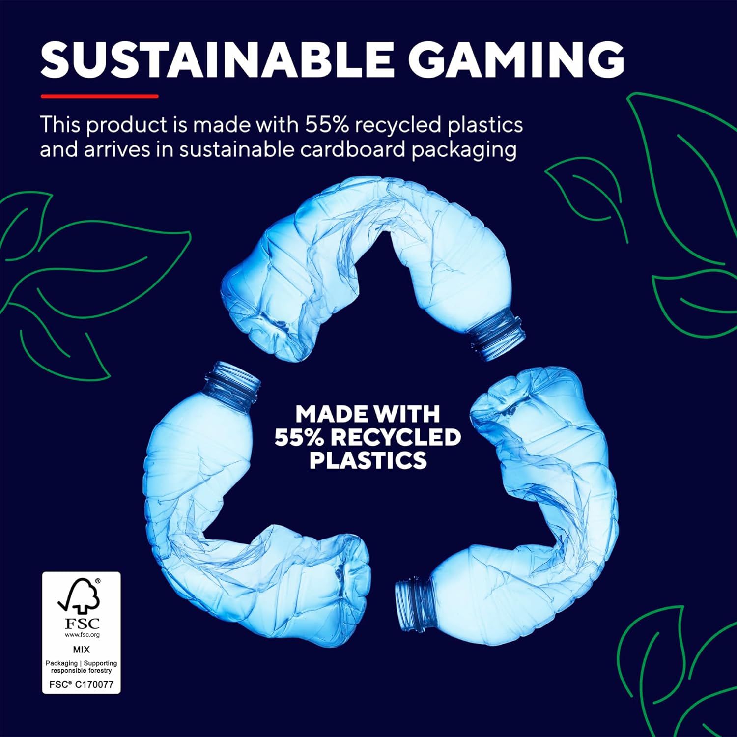 - Виріб на 55 % виготовлений із переробленого пластику