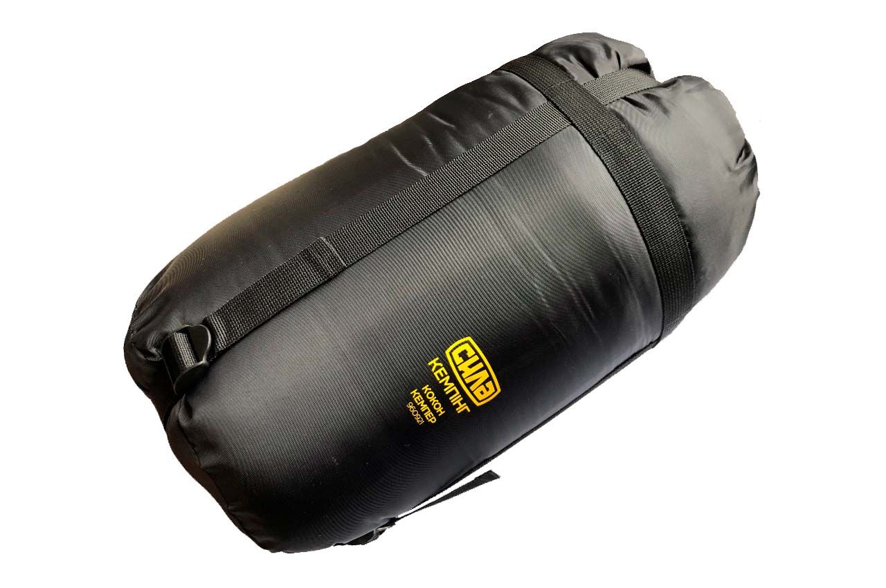 Спальник Сила - 2200 x 800мм -5 ° С кокон кемпер. Кокон – це невеликий та легкий спальник. За рахунок звуженої донизу конструкції добре зберігає тепло, тому часто використовується в погоду. Універсальний добрий розмір: довжина – 220 см, ширина в ногах – 55 см, у голові – 80 см, анатомічний каптур, двосторонні бігунки, дозволяють закривати блискавку з різних боків. Середній шар – 4-канальний утеплювач. У каптурі продумано місце для подушки, серед кишеню для документів, дрібних предметів. Запакований у чохол для зручності транспортування.
