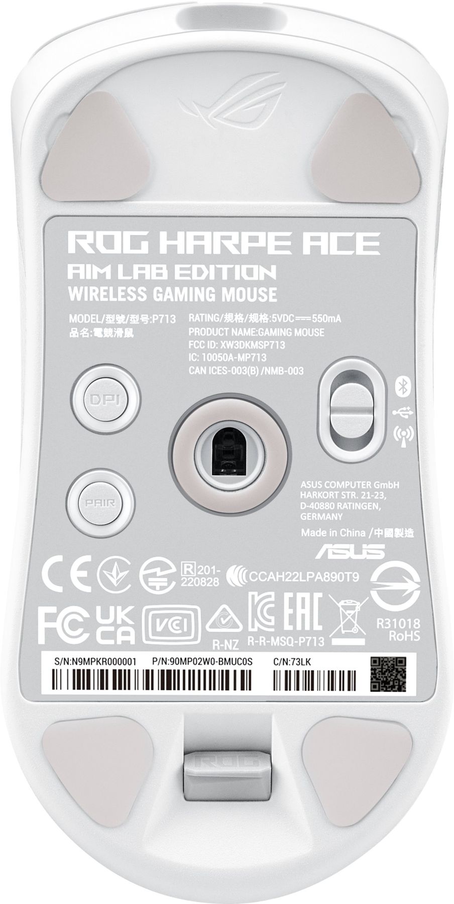 ASUS Mouse ROG Harpe Ace Aim Lab Edition, RGB, USB-A/WL/BT, white