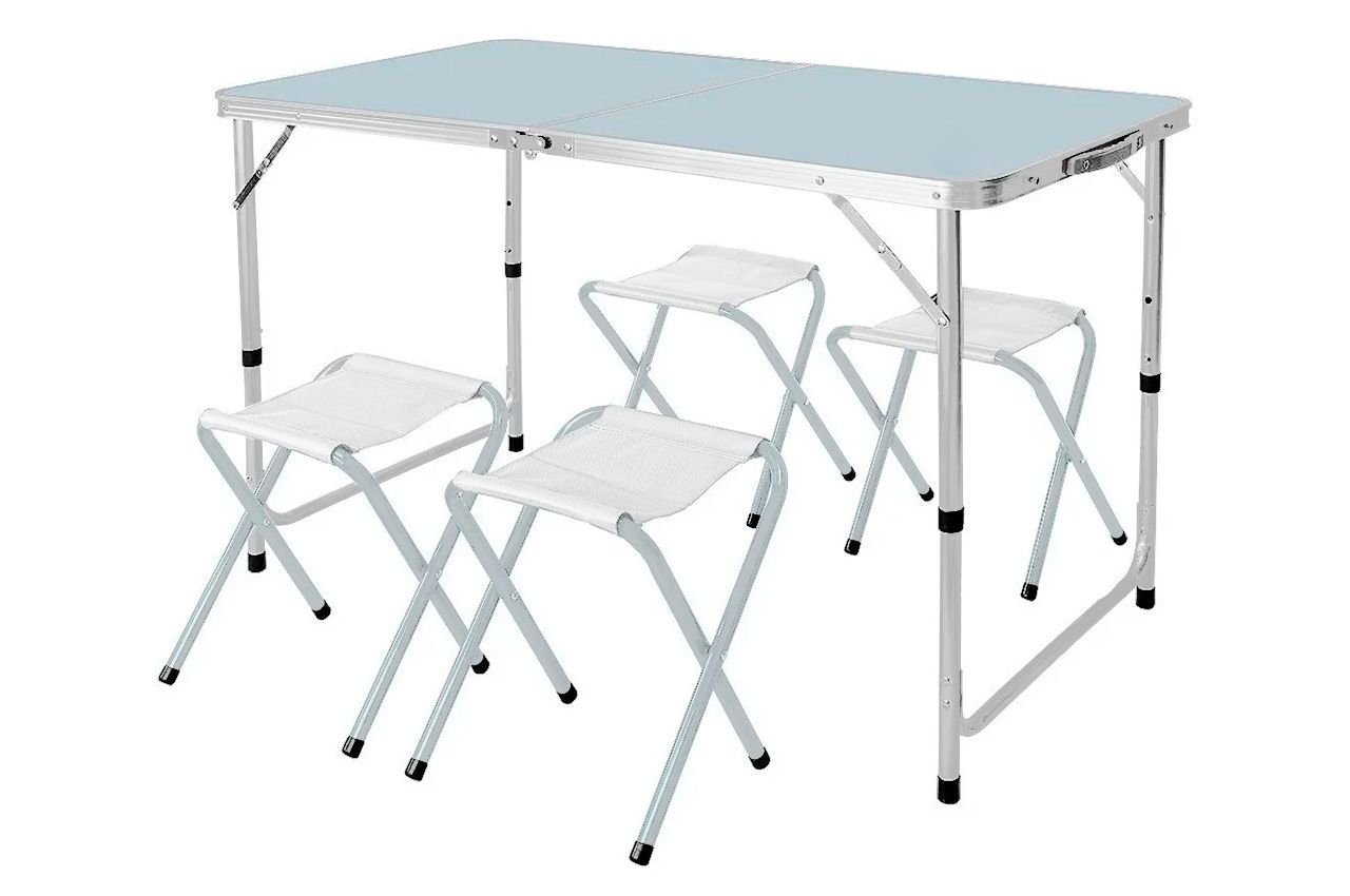 Комплект меблів для пікніка, що включає 5 предметів із мармуровим дизайном для стильного та комфортного відпочинку на природі або в саду. Міцні матеріали забезпечують довговічність, а легка конструкція дозволяє зручно транспортувати та зберігати меблі.