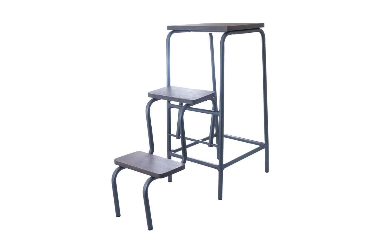 Табурет який може вам служити в домашніх умовах як табуретом так і драбиною. Матеріал ніжок - метал, матеріал сидіння - МДФ. Оригінальна конструкція табурета дозволяє одним рухом перетворювати його в зручну драбину на три сходинки. Незамінна при використанні на кухні і в інших приміщеннях з обмеженою площею.