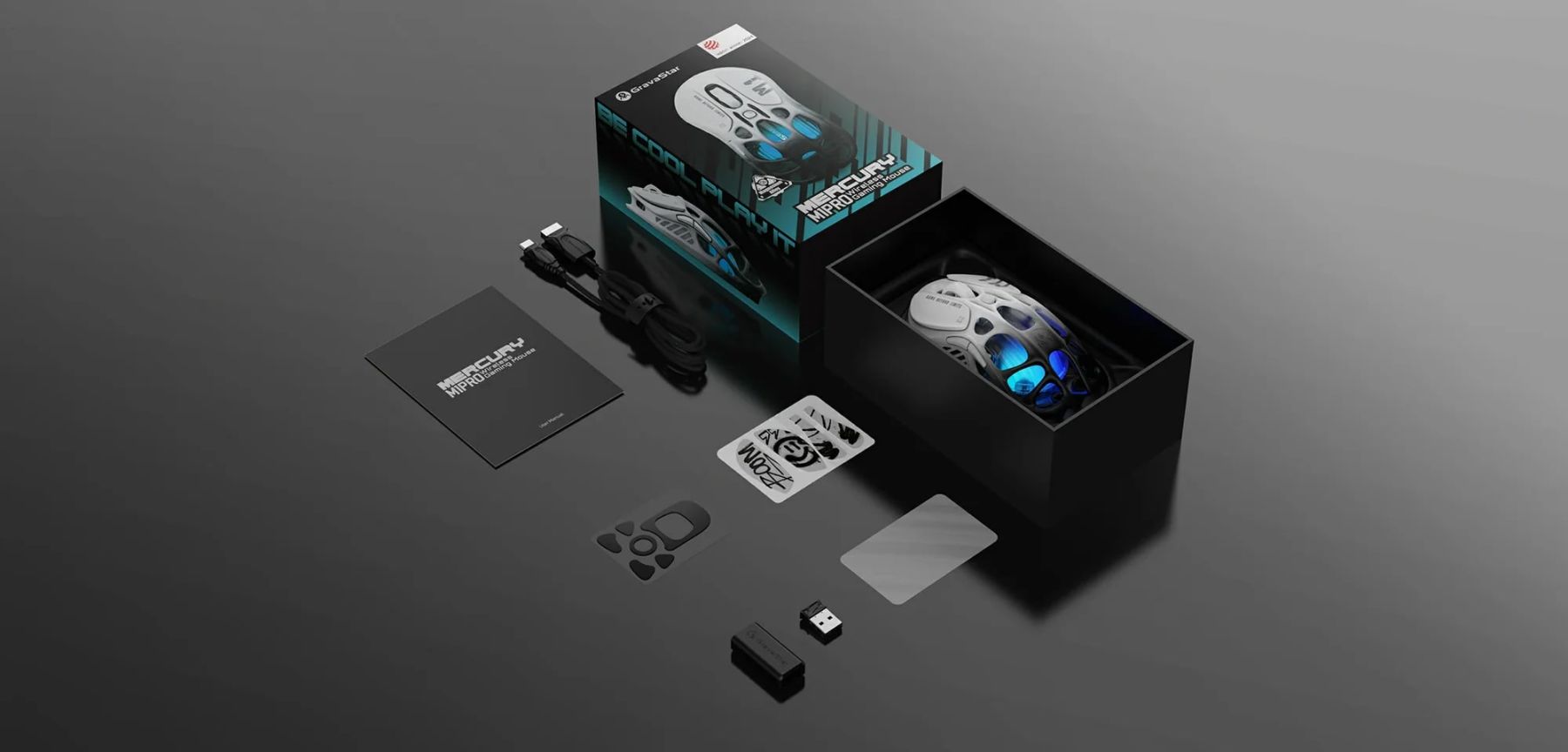 Комплектация:инструкция, зарядный кабель, миша, нескользящие накладки, тефлоновые накладки для ножек, салфетка для чистки, USB-A до USB-C удлинитель приемника, приемник 1k