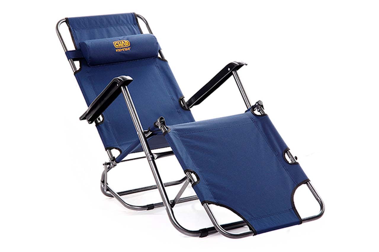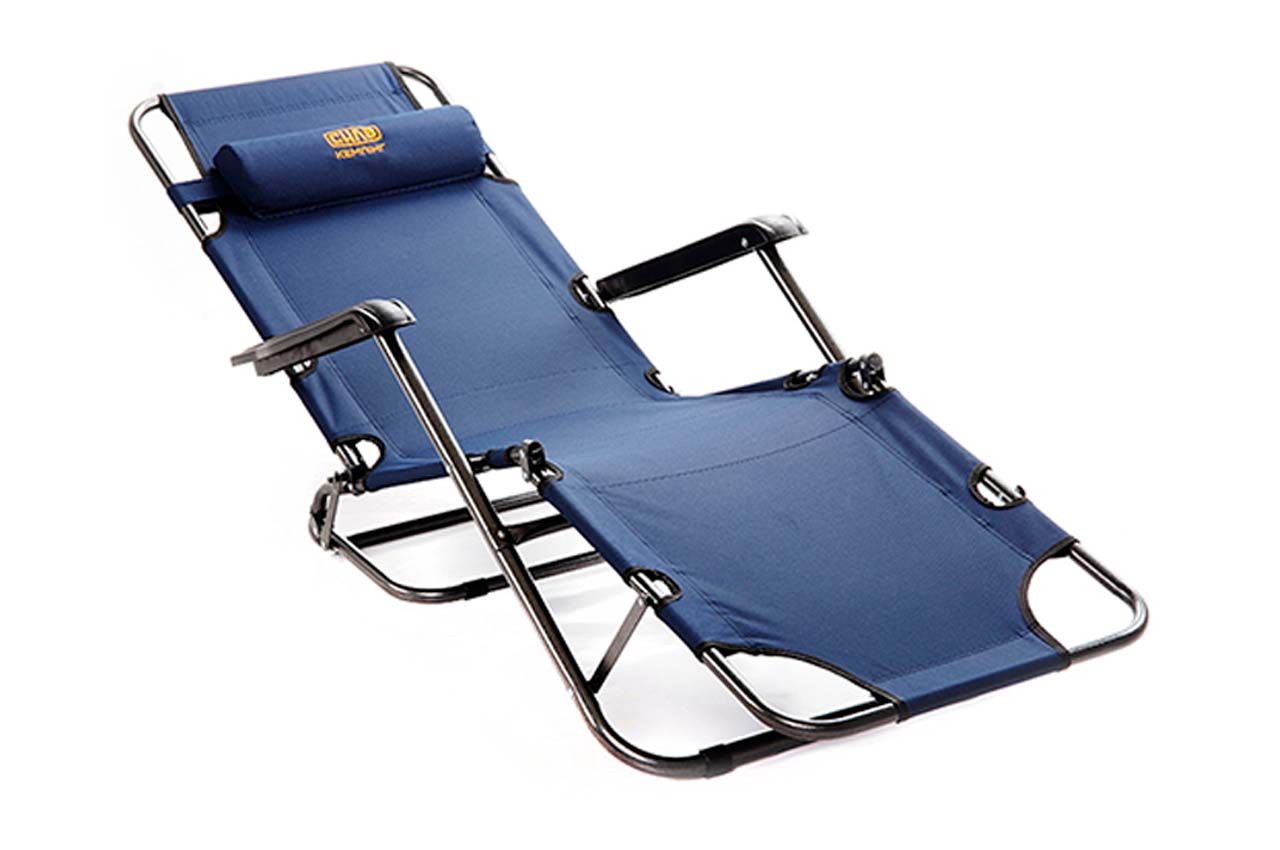 Производный раскладной шезлонг из качественных крепких материалов с подголовником, компактное туристическое кресло.