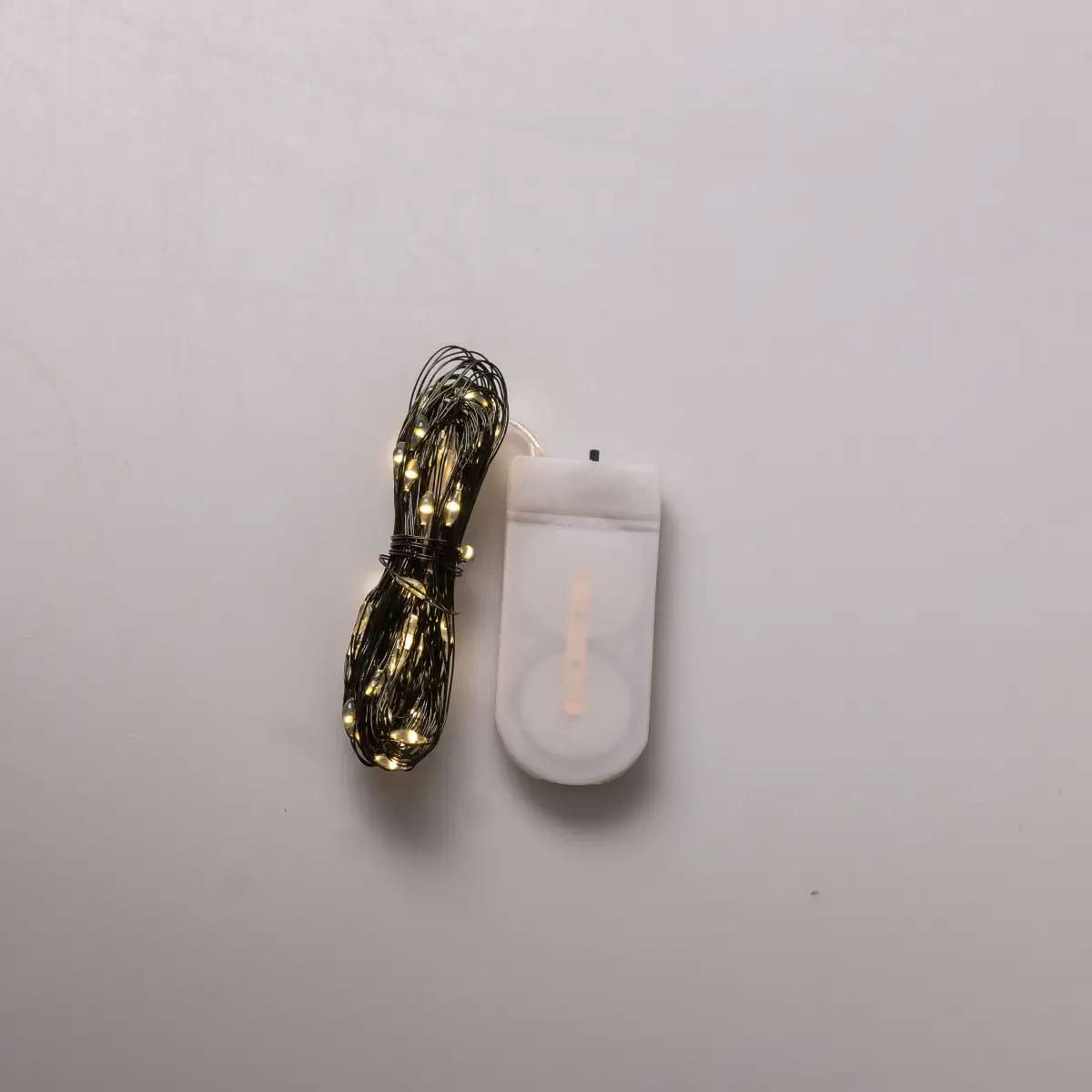 Світлодіодна гірлянда Роса 5 метрів на батарейках 50 led нитка на зеленому дроті жовта 50L5MGY